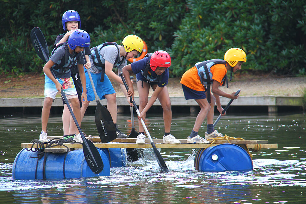 The trip allows Hampton’s new boys to get to know their peers outside the classroom, as they overcome physical and mental challenges as a group. The two days spent at the centre were packed with fun activities, which included a High Ropes course, a Blind Trail, Archery and Raft Building. Their skill in constructing the makeshift vessels was immediately tested when the rafts were tried out on the lake at Avon Tyrell, with mixed results.