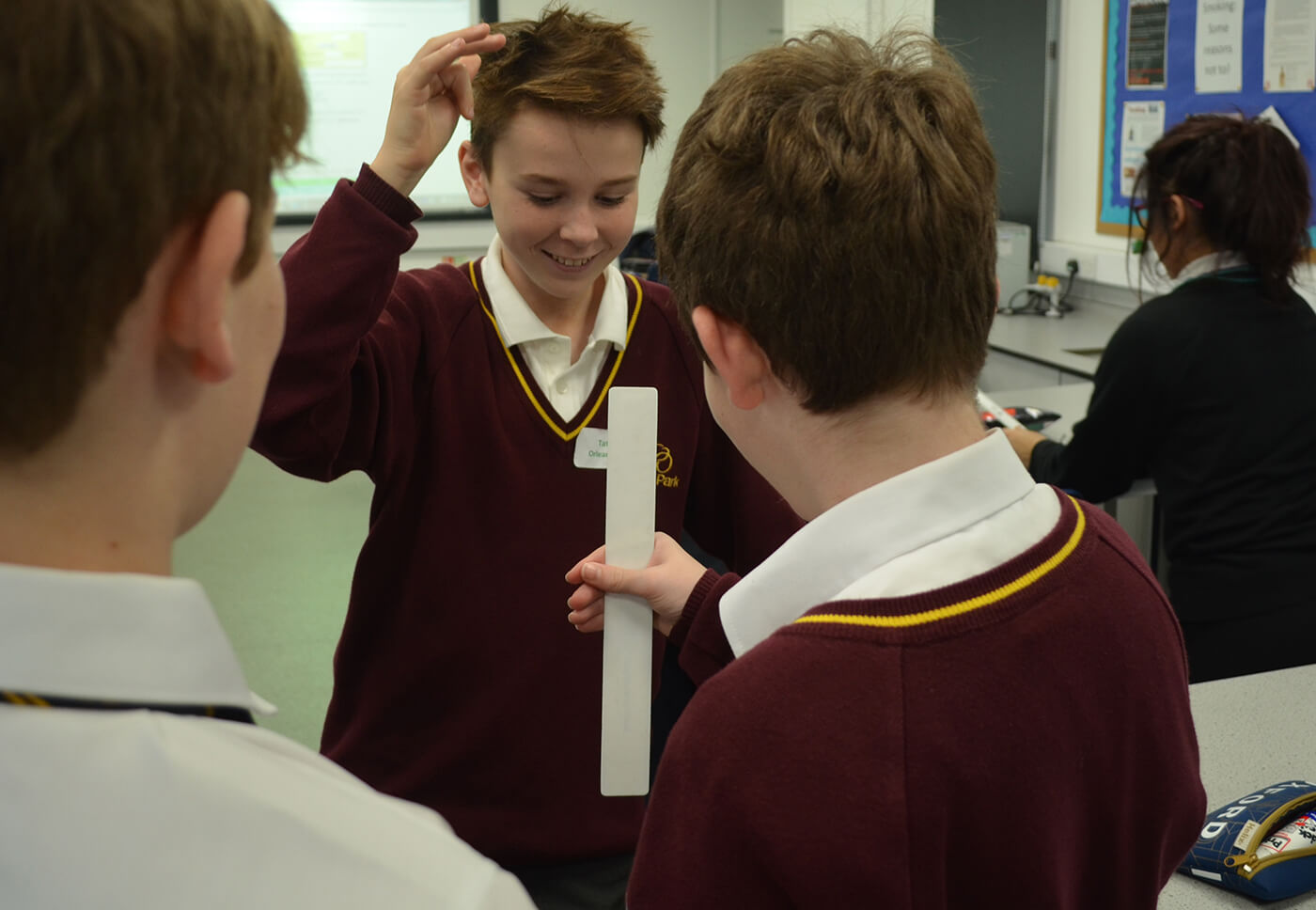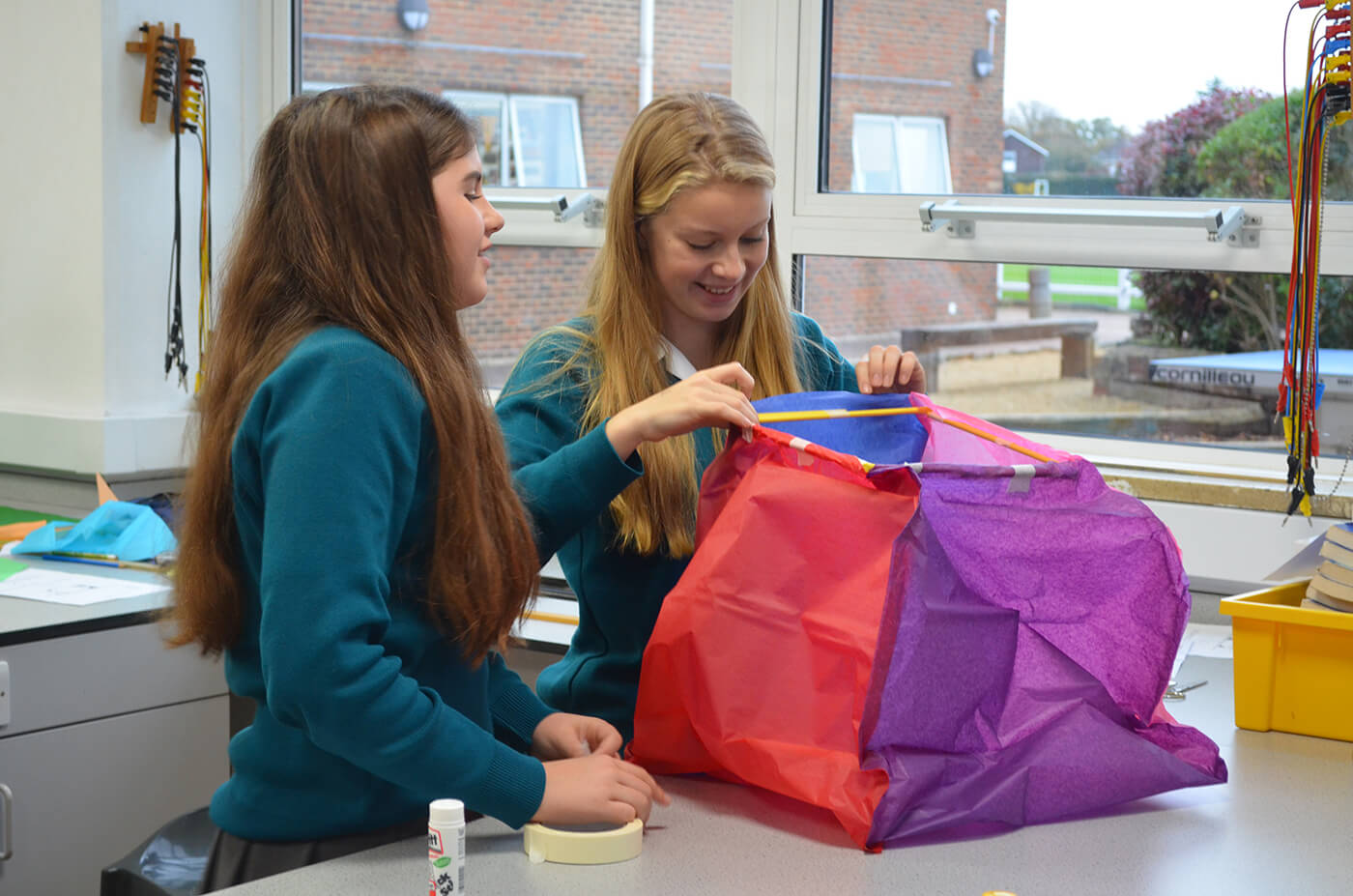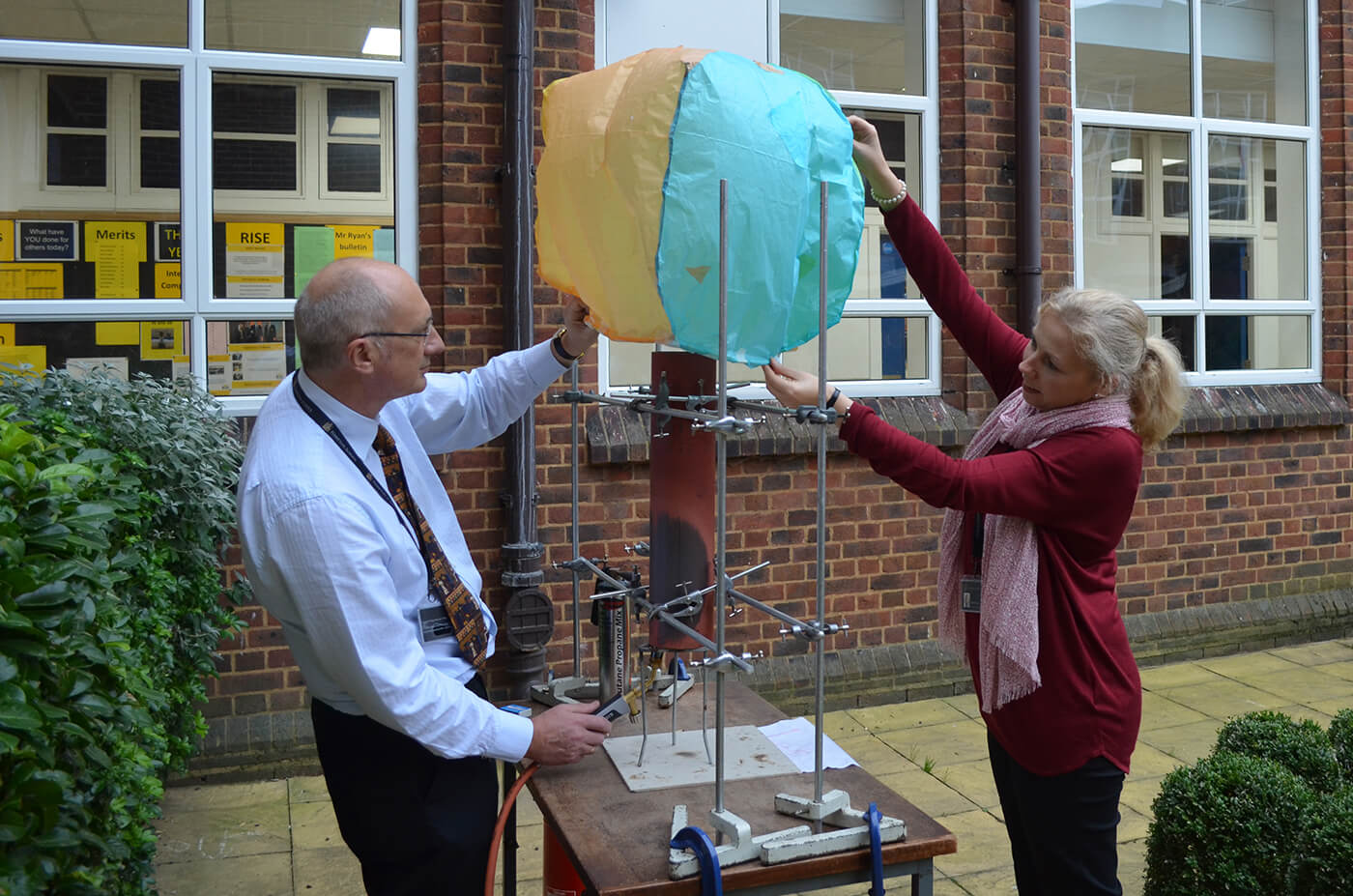 Boys and girls took part in a biology lesson investigating the nervous system, a chemistry lesson where they examined energy changes in chemical reactions, and a physics lesson looking at upthrust in hot air ballooning. Practicals involved testing each others’ reaction times, burning jelly babies and designing and building hot air balloons to test