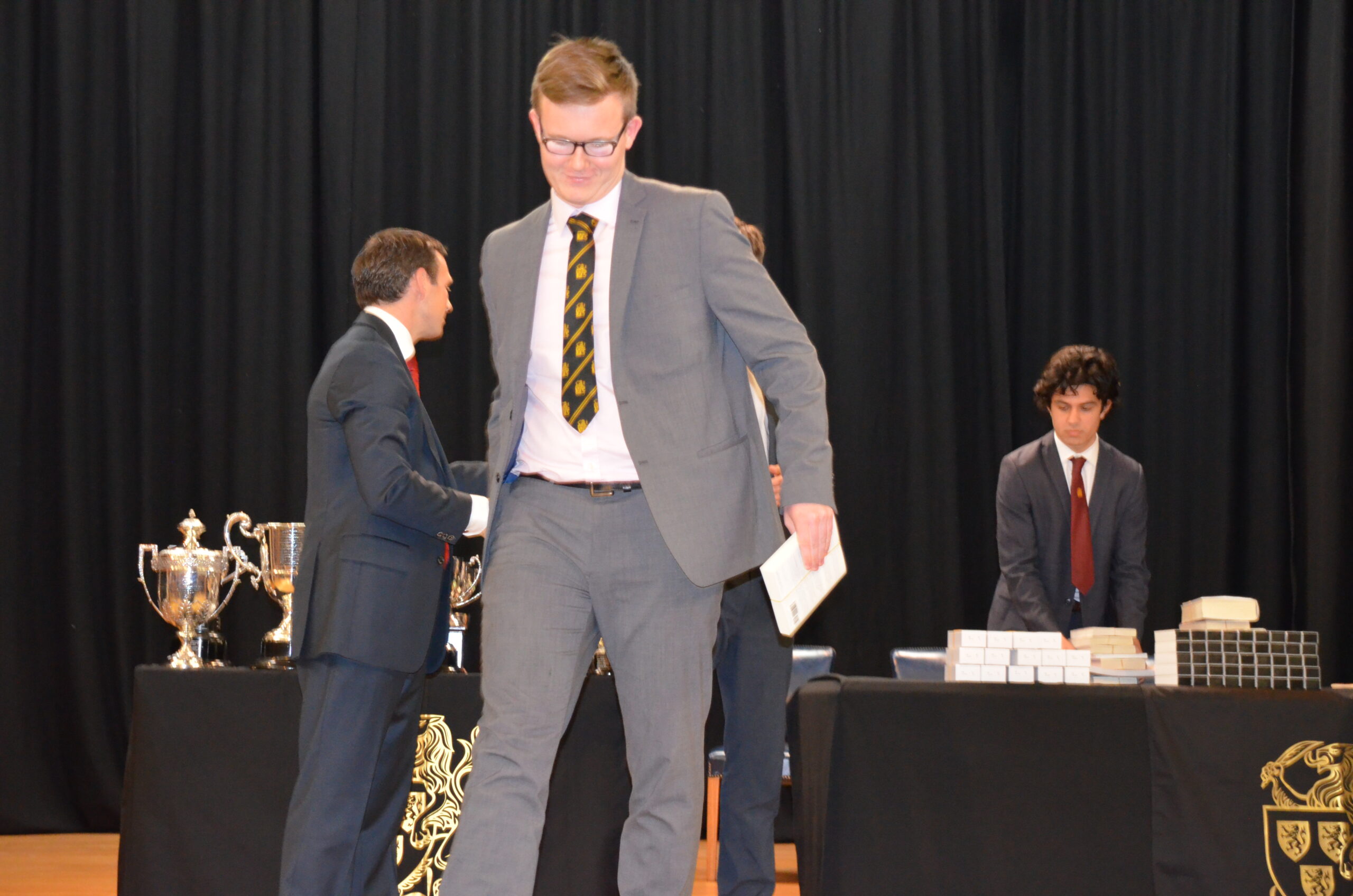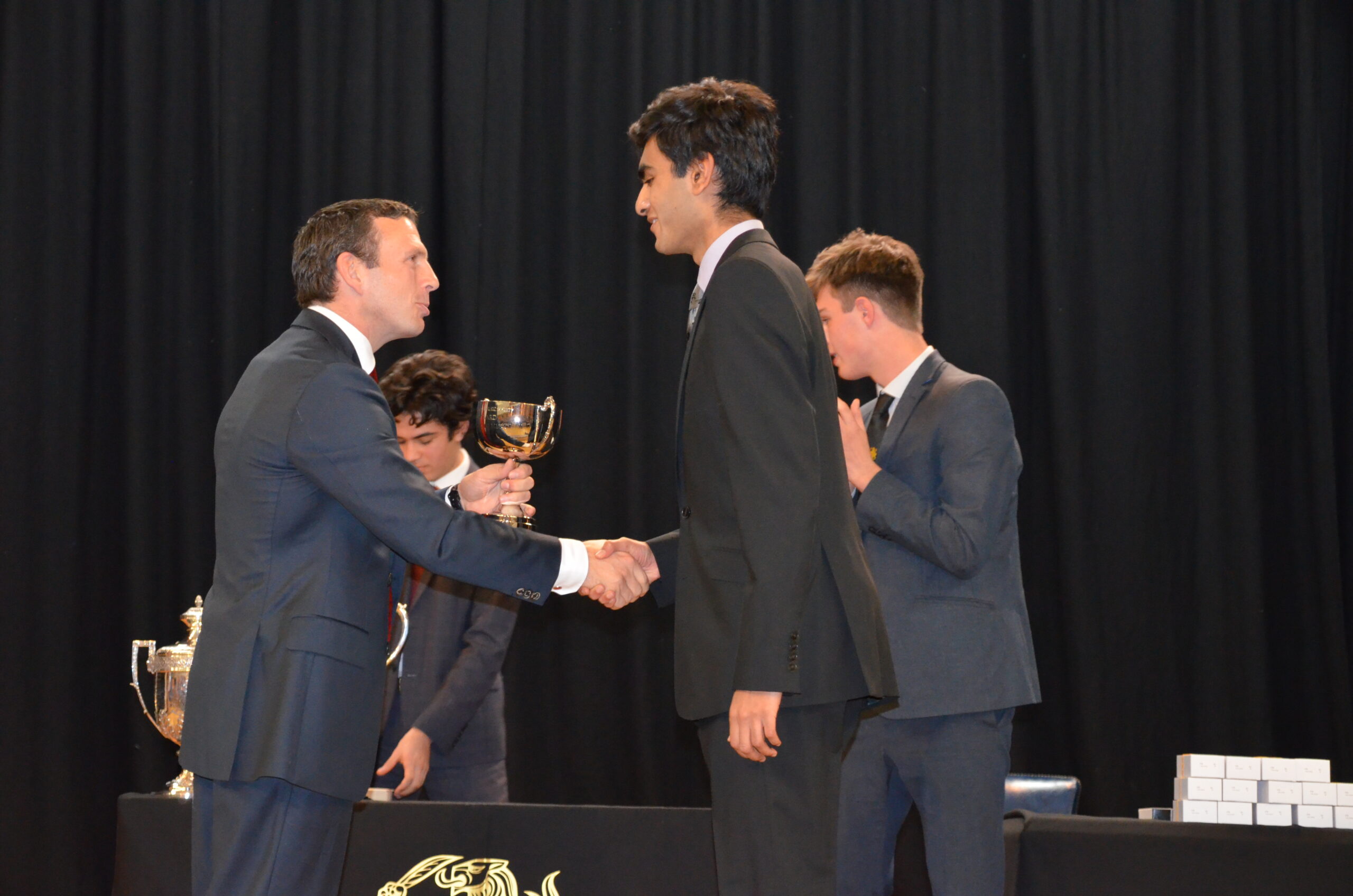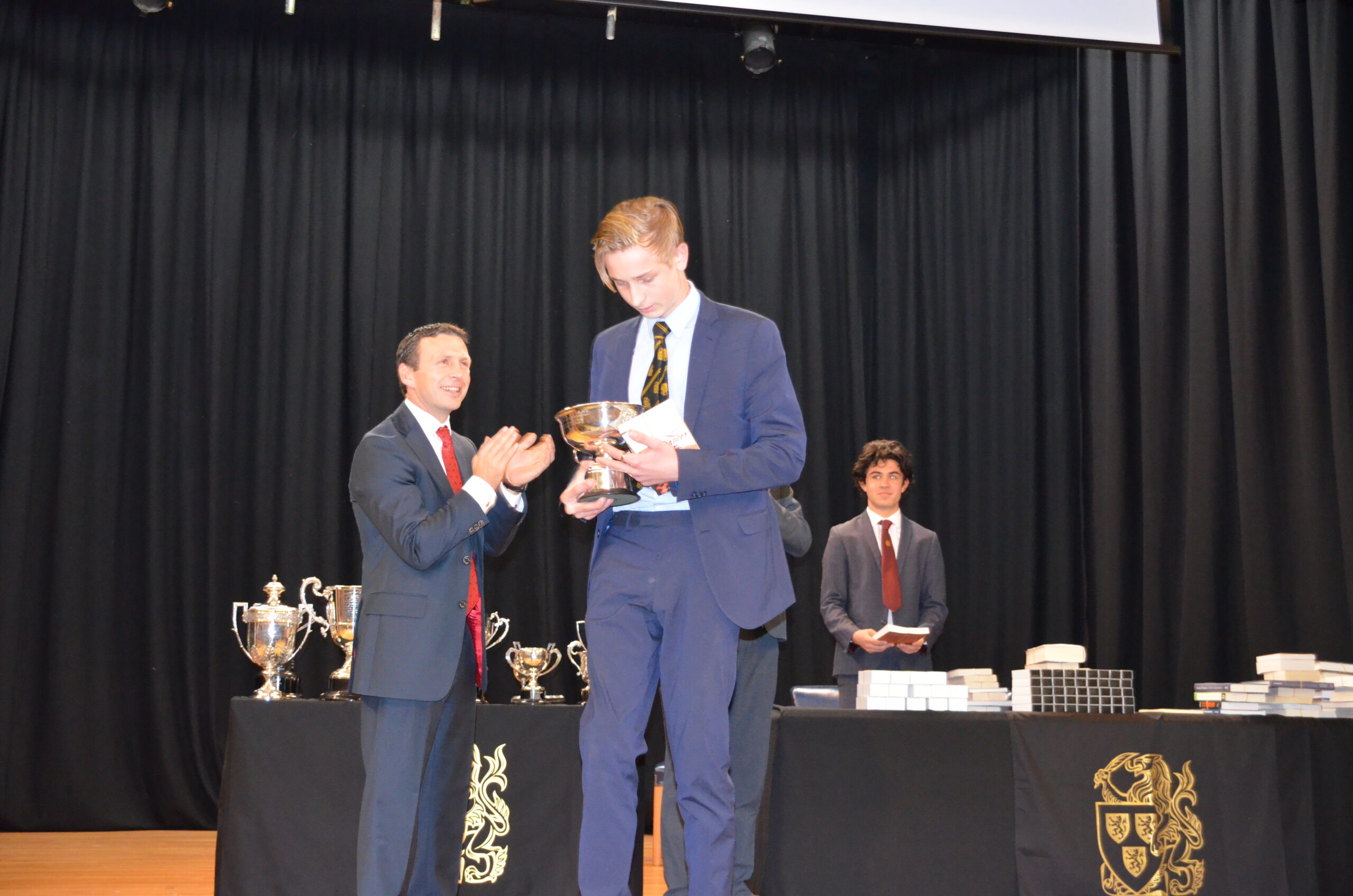 Simon presented prizes to over 200 boys from the Fourth Year upwards and the main awards of the evening included the Dennis King Cup for unselfish service to the School, awarded this year to Daniel Sparks. The Howes Cup was jointly presented to last year’s Vice-Captains, Luca Cericola, James Emeny and Sam Howard-Sneyd, while former School Captain, Tom Nunan, was awarded the Fitzwygram Cup.