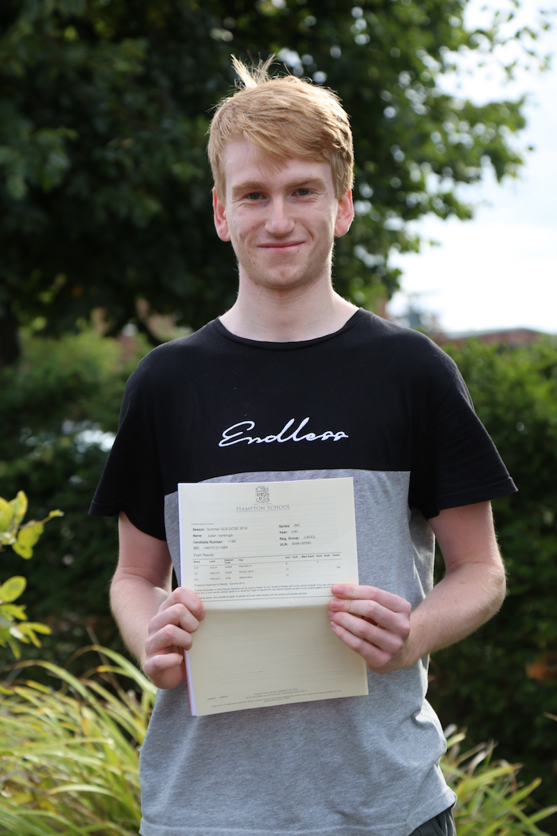 Another straight A* grades Hamptonian, Julian Vanbrugh, is delighted to be heading to Coventry University to study Motorsport Engineering. Julian who has had a lifetime passion for Formula 1 says: