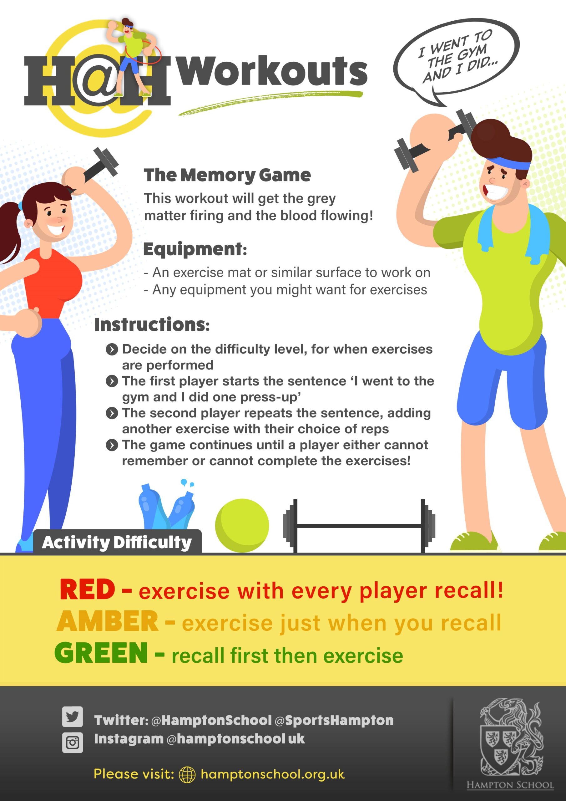 This week’s H@H workout is a very creative workout devised by Fourth Year Oliver Townend, in response to one of our PE tasks – massive thanks to Oliver for putting this together! Challenge a family member or friend, to Oliver’s random workout using words! You can also test your foreign language vocabulary, by choosing a topic for words set in one of your languages at Hampton, or a new language you are learning!