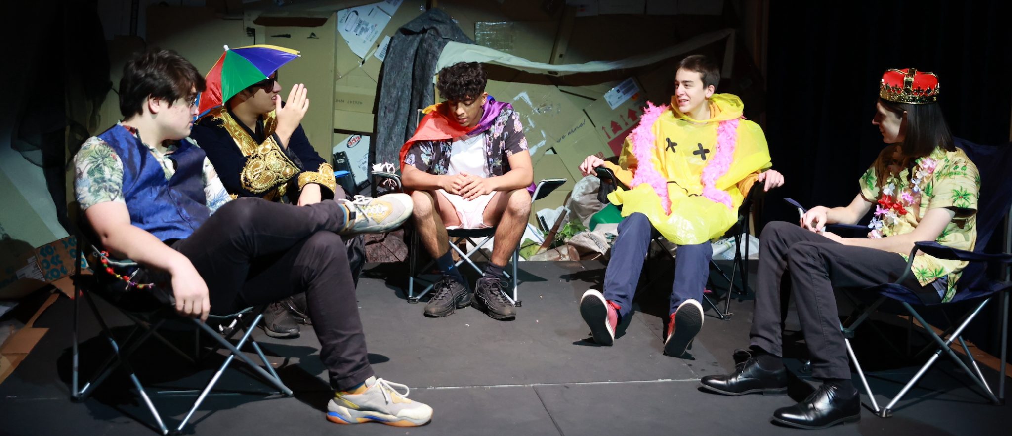 With five scenes running simultaneously, and five audience groups moving from a festival set in a forest to a police station, the young actors had to think on their feet to predict how the audience would interrogate the suspects.