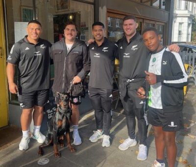 During half term, I was lucky enough to meet the New Zealand Rugby team. I was on the way to a friend’s house, when my dad spotted a sign saying that the team were outside a pub called the Proud Mary’s, where they were serving drinks for the anniversary of the establishment. After working up the courage, I managed to ask for pictures with them, as well as getting their autographs.