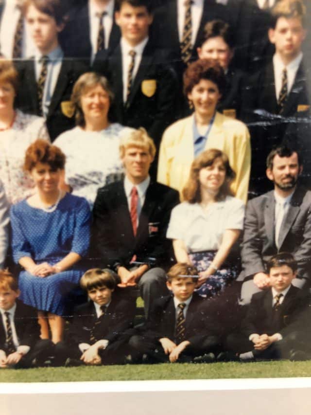 Did you guess correctly? Sitting at Mr Clarke’s right foot with the ungainly brown bowl cut, you will see Mr Green as he was as a First Year at Hampton.
