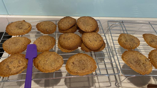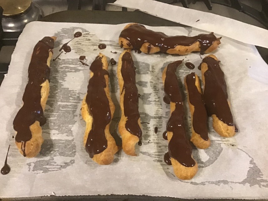 I CANNOT BELIEVE you would ask us this before the Tuesday eve broadcast – it’s like you don’t even watch it!! Rowan went home in the programme last night, which is sad news for his team, Anuj and Chris. However, there has been a brilliant lot of baking going on (see below), especially by Chris, which has gained his team important points! Tom’s banana bread looks brilliant, even though he revealed to us that it turned out to be raw inside…Mr Saunders and I are very pleased with how the boys are getting into it all.