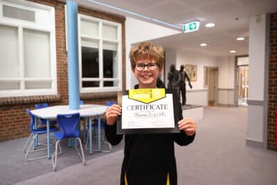 Every week, the First Year Tutor team nominate a boy who they have been particularly impressed with and Mr Hill and Mr Fuldner present him with a certificate and a tasty treat to eat!