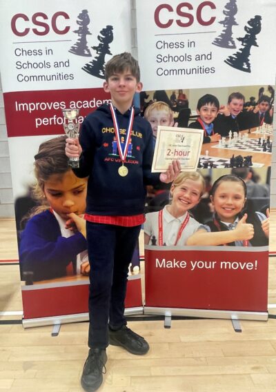 A huge well done to Nico A-G (2F), who has recently taken part in the first tournament of the 2026 Grand Prix series, organised by the chess charity Chess in Schools and Communities. He came away with both the trophy and a gold medal in the U14 category. These tournaments have been running for three years in a row, with the CSC Junior Grand Prix Finals held as part of the London Chess Classic. Last November, Nico finished second in the U12 final, so it’s lovely to see him starting the 2026 season so strongly!
