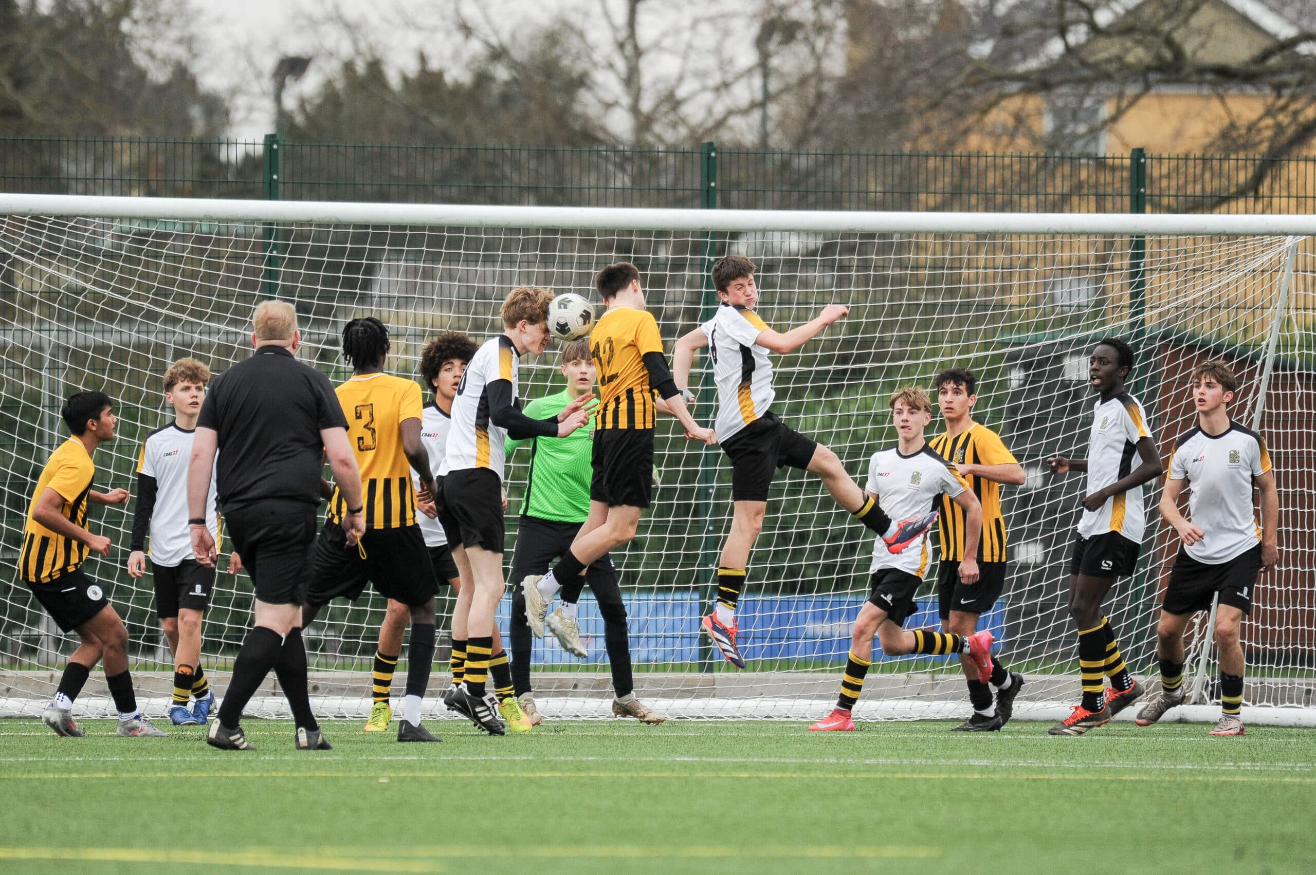 Hampton School v Aldenham School in a English Schools Football Association Under 15 Boys Cup Semi Final match on Tuesday 25th March 2025 (c) Garry Griffiths | ThreeFiveThree Photography